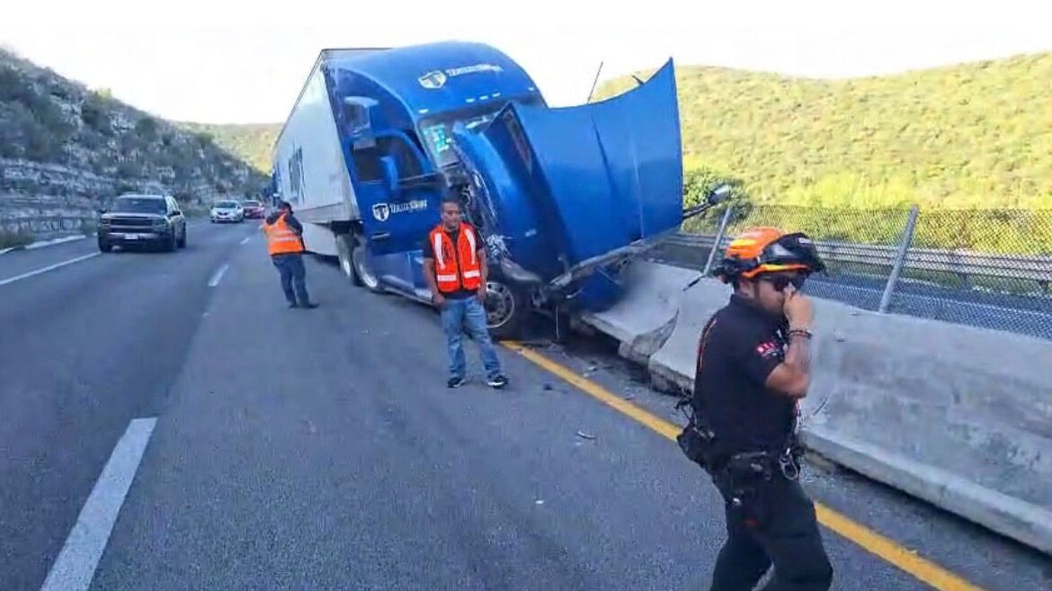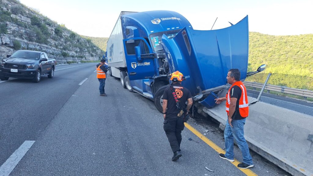 De acuerdo con información de Protección Civil Nuevo León, un tráiler se impactó contra el muro de contención cuando circulaba en dirección de sur a norte, poco después de pasar la Cuesta de Mamulique. Afortunadamente, no se reportaron personas lesionadas.
