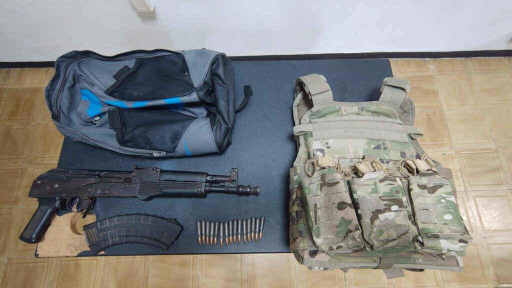 Al recibir la instrucción de entregar el arma, el adolescente intentó escapar, pero fue interceptado por los oficiales. La revisión de sus pertenencias permitió asegurar un arma larga con 15 cartuchos y un chaleco balístico con porta cargadores.