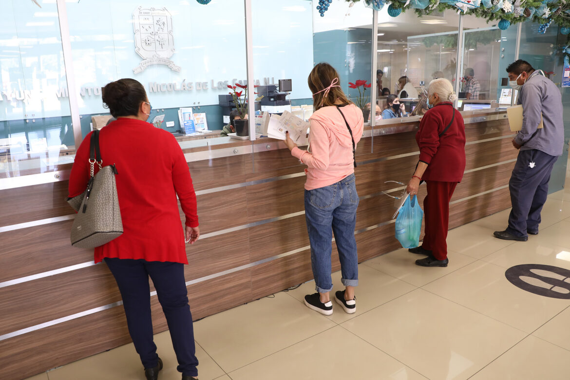 Las cajas de la Tesorería Municipal estarán abiertas de 8:00 de la mañana a 5:00 de la tarde en sus diferentes módulos ubicados en la Presidencia Municipal, en el Parque Las Arboledas, en la Casa de la Cultura La Pérgola, en el Módulo de la colonia Unidad Laboral, Unidad Móvil en la colonia Cuauhtémoc, en el Gimnasio Mario J. Montemayor de la Colonia Hacienda Los Morales, Delegación de Pasaportes, Módulo de la colonia Andalucía, en Servicios Médicos San Nicolás (CEDECO) en la Colonia Valle Dorado, y en la Mesa de Hacienda de la Dirección de Movilidad ubicada en Arturo B. de la Garza y Sendero.