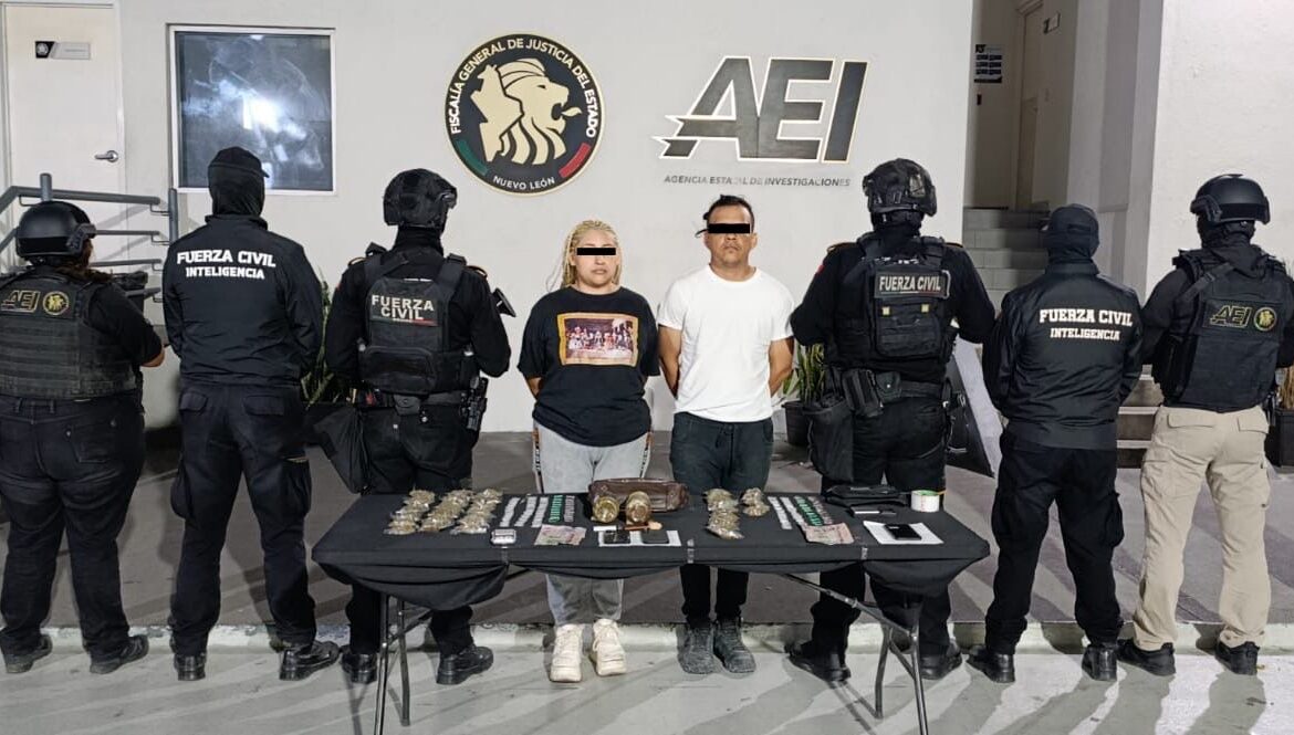 San Pedro Garza García, N. L.– Durante un operativo conjunto del Grupo de Coordinación Metropolitana, elementos de la Agencia Estatal de Investigaciones y de Fuerza Civil detuvieron a una pareja que presuntamente se encontraba consumiendo drogas en la vía pública, en el sector Casco Urbano de San Pedro.