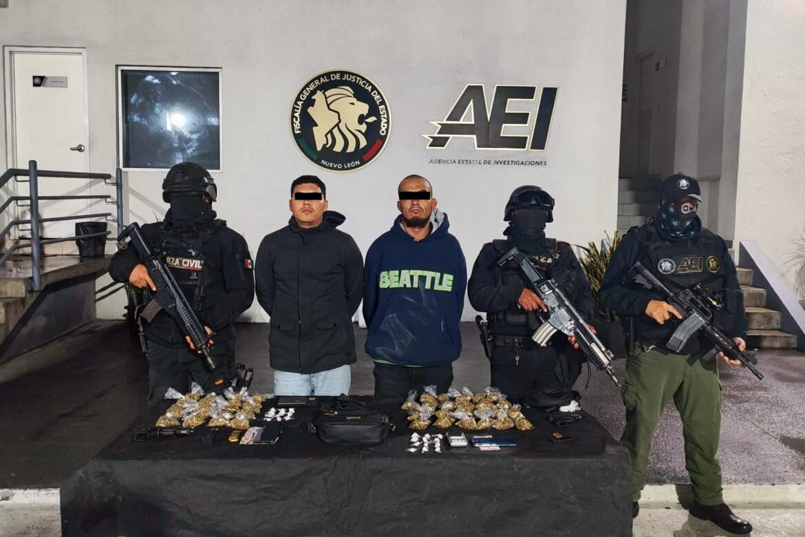 Dos hombres identificados como presuntos generadores de violencia fueron arrestados durante una acción de seguridad realizada al sur de Monterrey, como resultado de labores tácticas efectuadas por corporaciones estatales.