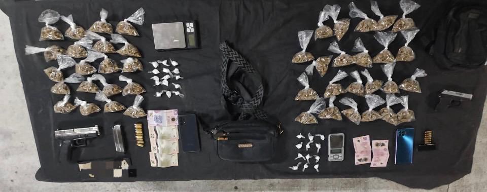 Los individuos dijeron llamarse Miguel “N”, de 29 años, y Rosbil “N”, de 23. Al realizar la inspección correspondiente, los oficiales localizaron entre sus pertenencias dos armas cortas con 15 cartuchos útiles, así como 43 envoltorios con hierba verde seca con apariencia de marihuana y 27 dosis de una sustancia granulada similar al cristal.