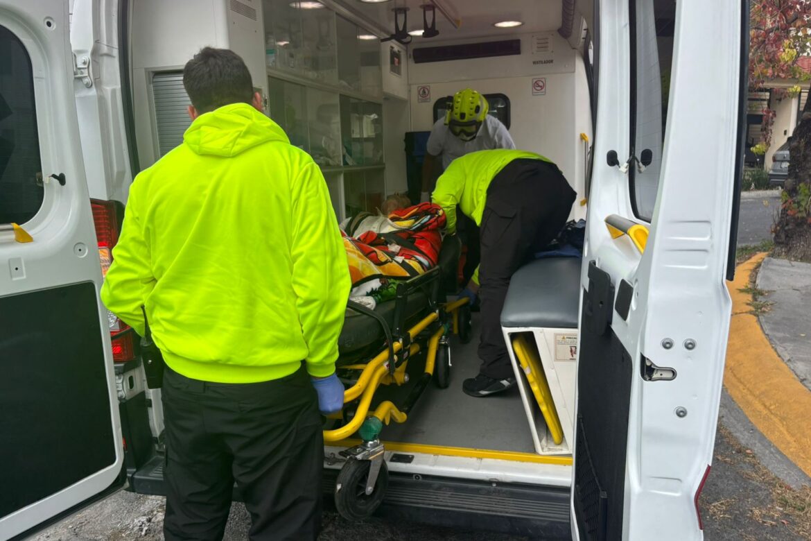 Tras la valoración inicial, los rescatistas detectaron una probable fractura en la rótula izquierda, por lo que se procedió a su traslado al Hospital Metropolitano, donde quedó bajo observación médica para una evaluación más detallada.