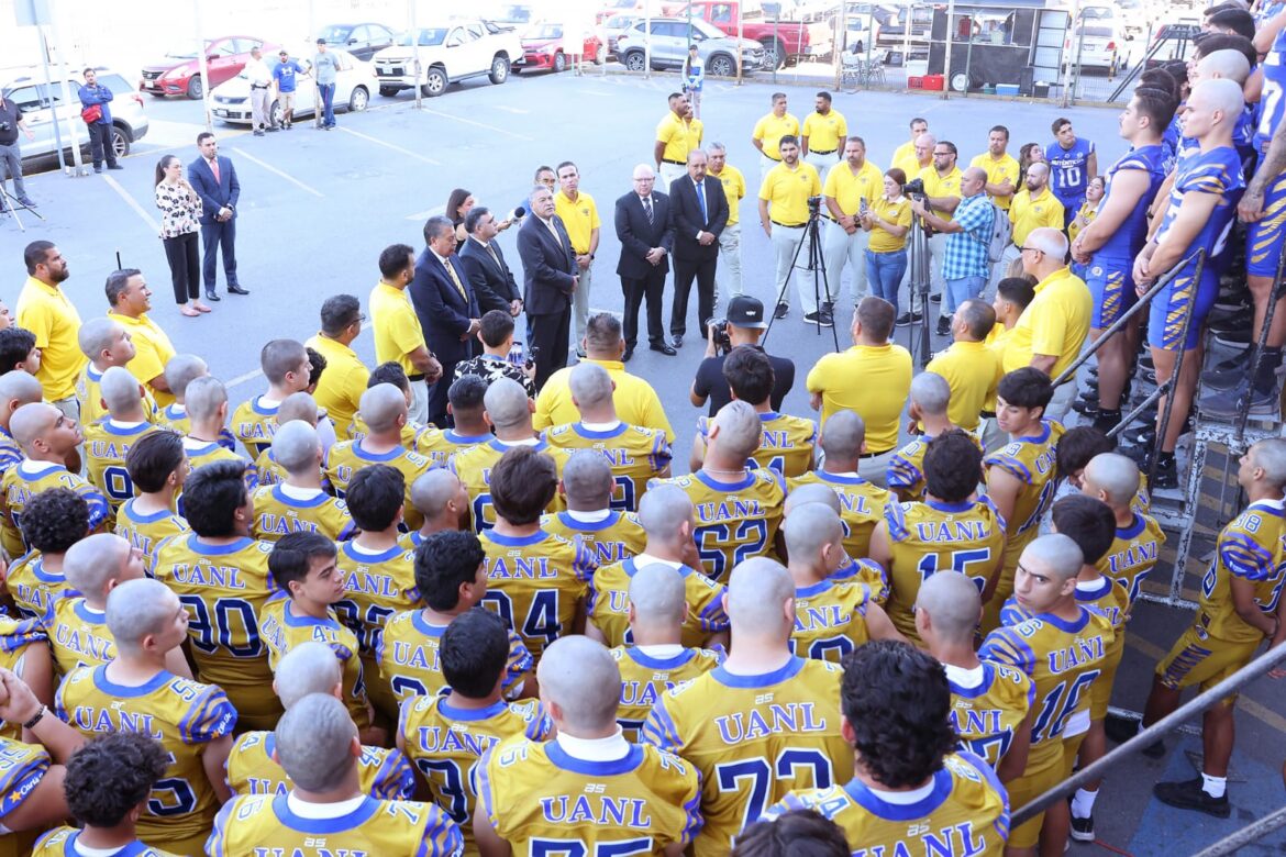 Monterrey, NL.– Con la temporada 2025 de la ONEFA a la vuelta de la esquina, la UANL presentó a sus equipos de futbol americano, tanto en categoría Mayor como Juvenil. La ceremonia de fotografía oficial tuvo lugar en el Estadio Raymundo “Chico” Rivera, donde los jugadores y entrenadores convivieron con el Rector Santos Guzmán López.