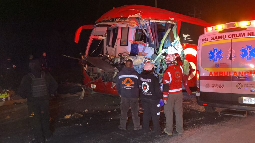 Cinco personas resultaron lesionadas tras un accidente vial ocurrido sobre la Carretera Nacional, en el municipio de Linares, Nuevo León, donde se vieron involucrados un autobús de pasajeros y un tráiler.