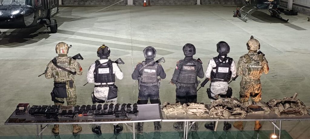 Bustamante, N.L.– Un importante decomiso de armas y equipo táctico fue realizado por elementos del Grupo de Coordinación conformado por la Secretaría de la Defensa Nacional, Guardia Nacional y Fuerza Civil, durante un operativo en la zona rural del municipio de Bustamante.