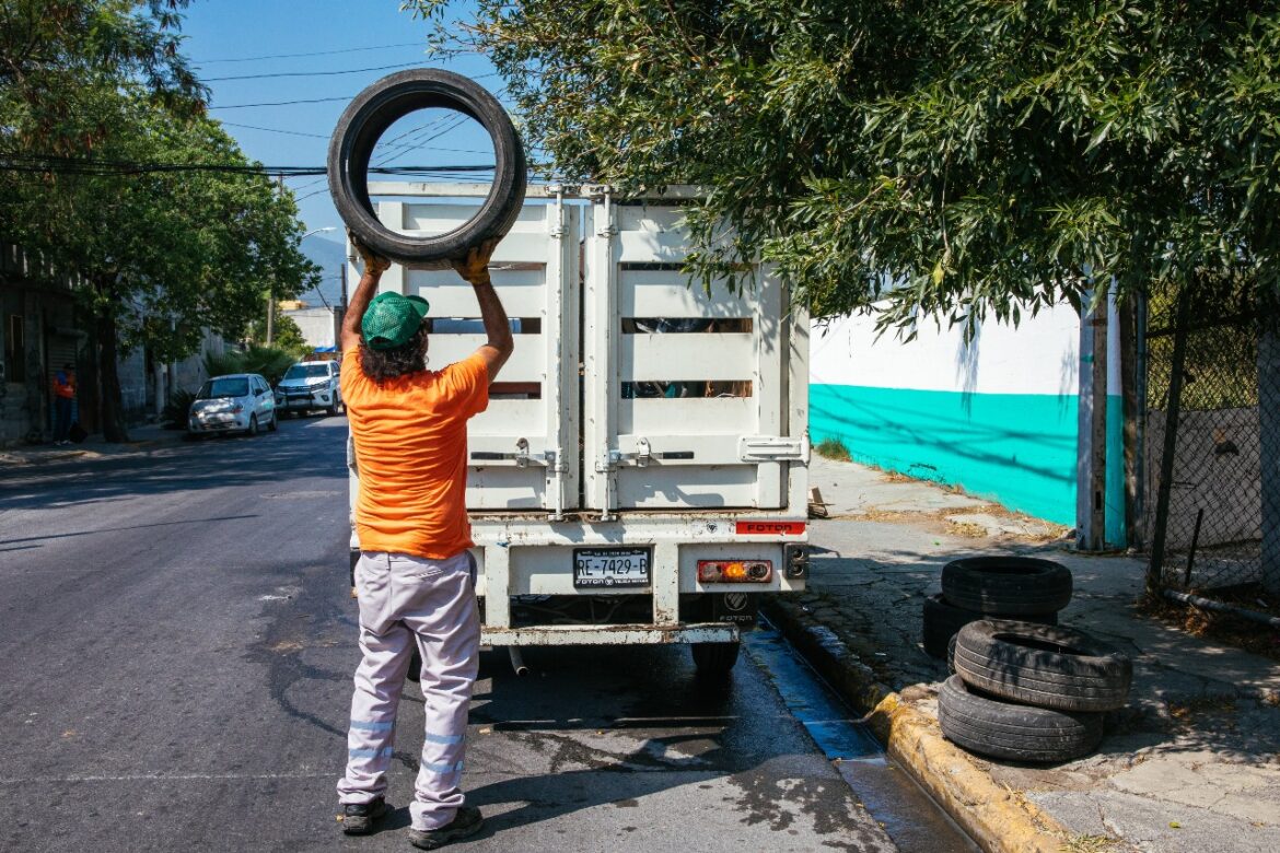 13 de Agosto de 2025.- Más de 44 mil llantas y objetos en desuso han sido retirados de colonias de Guadalupe desde que comenzó la actual Administración, como parte del programa de descacharrización que busca reducir riesgos de enfermedades transmitidas por mosquitos.