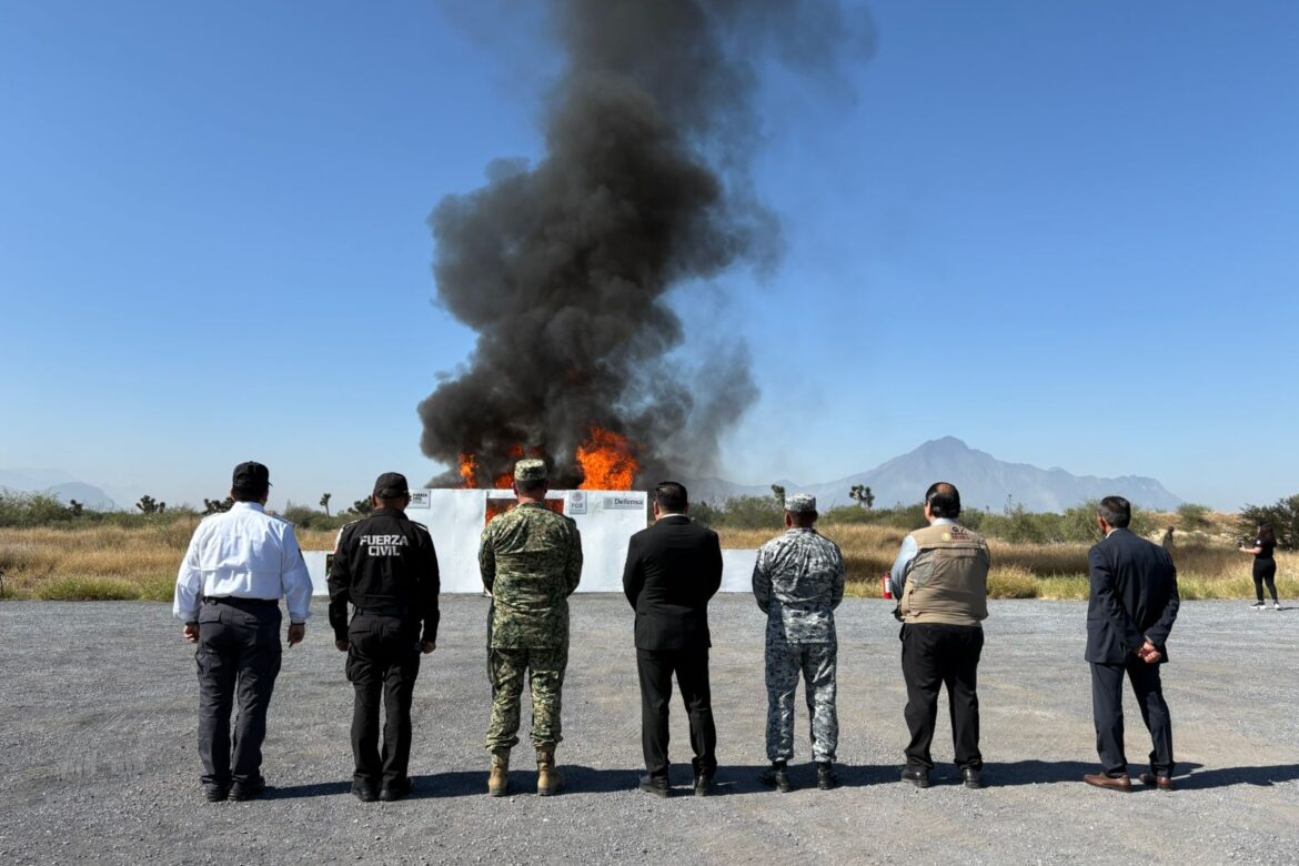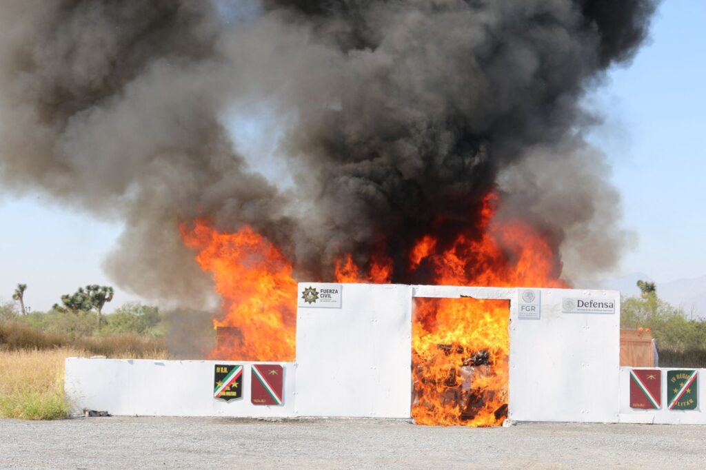 En un operativo conjunto, la Fiscalía General de la República (FGR) y la Secretaría de la Defensa Nacional llevaron a cabo la destrucción de más de 370 kilos de narcóticos asegurados en diferentes acciones realizadas en Nuevo León. La incineración tuvo lugar este 14 de noviembre en las instalaciones de la VII Zona Militar, ubicadas en Escobedo.