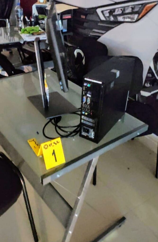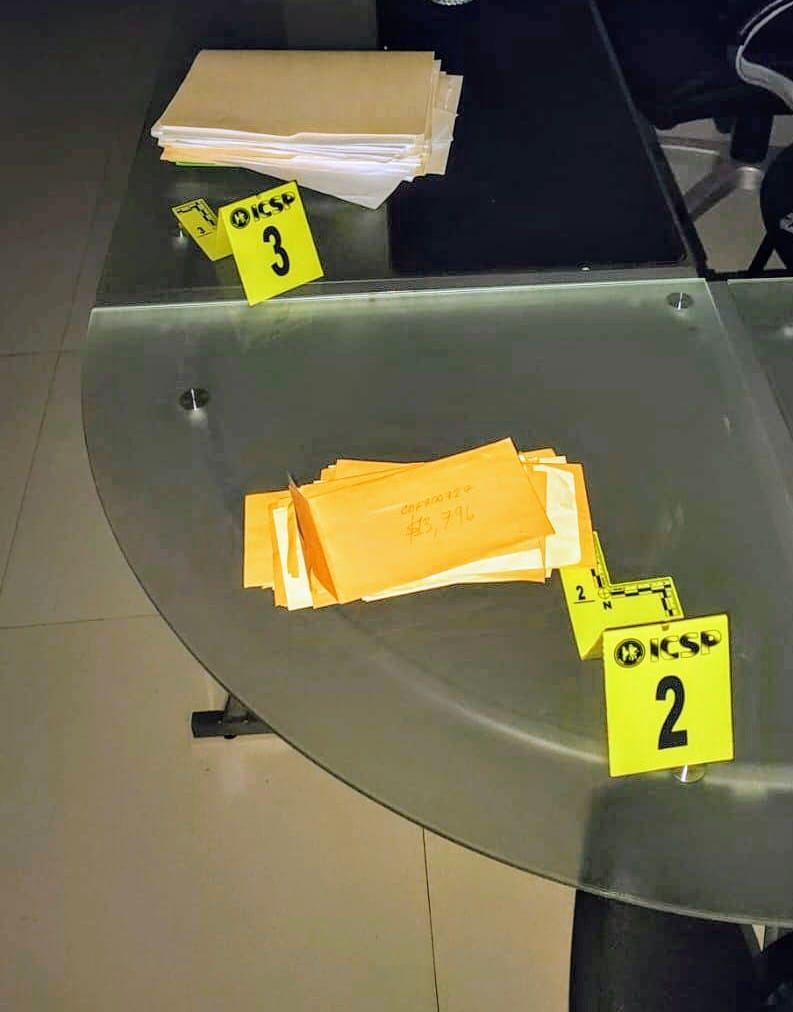 Durante el cateo, personal de la Fiscalía, con apoyo de detectives y elementos de distintas corporaciones, encontró equipo de cómputo, tablets, papelería y terminales bancarias, todos indicios que podrían estar relacionados con actividades irregulares.