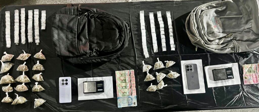 Durante el recorrido, los uniformados se percataron de un grupo de personas que se golpeaban entre sí. Al intervenir para disolver la pelea, los oficiales realizaron una revisión a los participantes y encontraron entre sus pertenencias sustancias con características similares al cristal y marihuana, además de otros indicios relacionados con la venta y consumo de drogas.