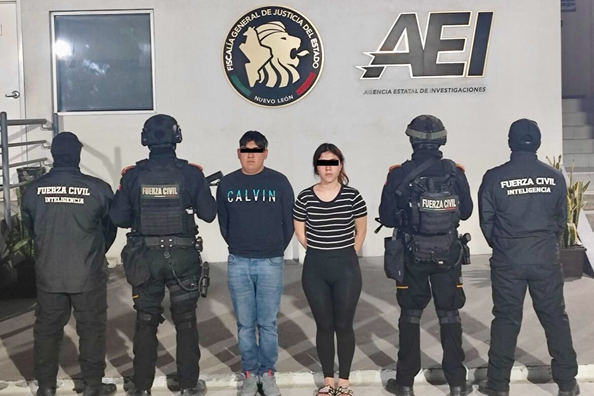 Una pareja fue detenida por elementos de Fuerza Civil tras un operativo de inteligencia efectuado en el municipio de Apodaca, al ser señalada como presunta integrante de un grupo delictivo.