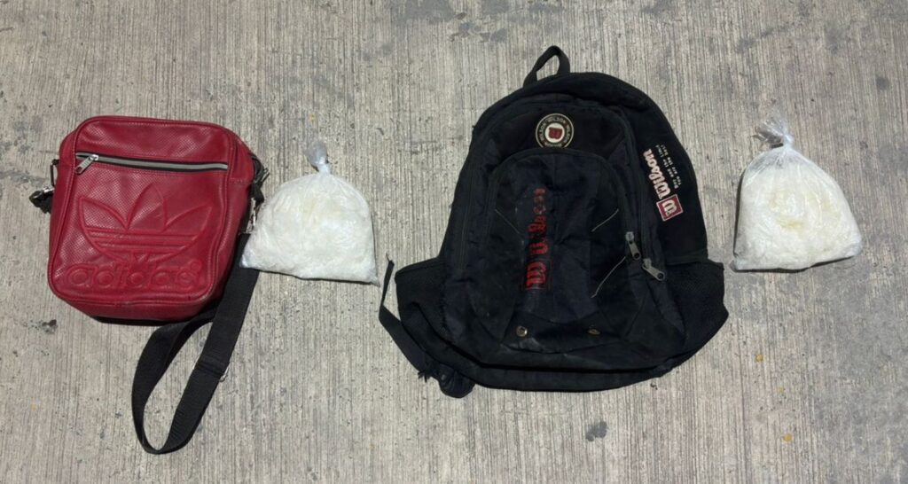 Tras la revisión, los individuos fueron identificados como Daniel “N”, de 18 años, y Eduardo “N”, de 20, a quienes se les encontraron dos bolsas que contenían una sustancia sólida con características similares al cristal.