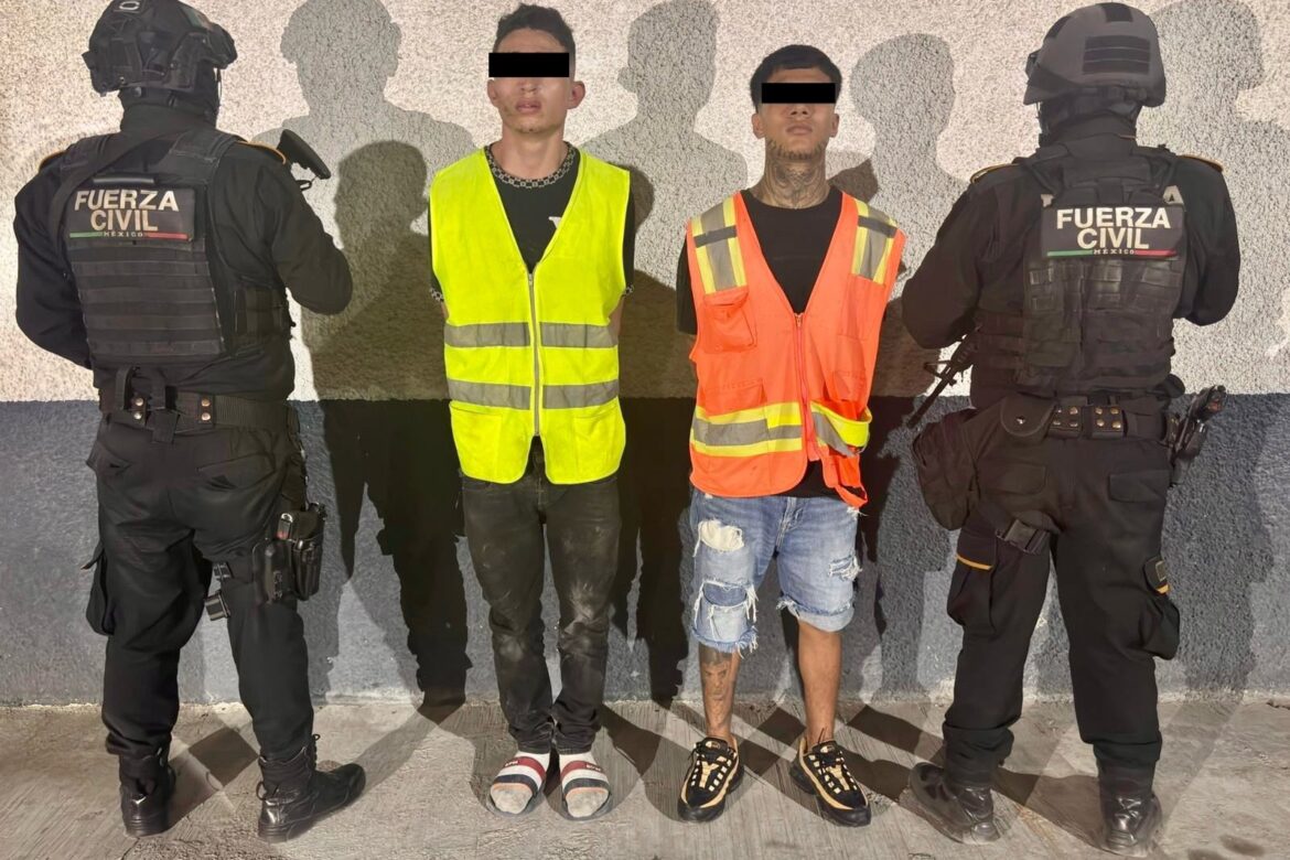 Apodaca, N.L., 19 de agosto de 2025. — Dos jóvenes fueron detenidos por elementos de Fuerza Civil en el municipio de Apodaca, luego de que en medio de una riña les aseguraran varias bolsas con droga conocida como cristal.