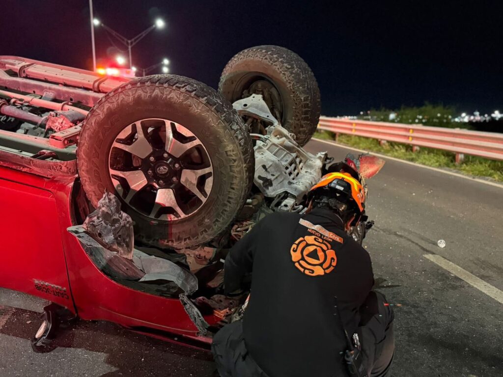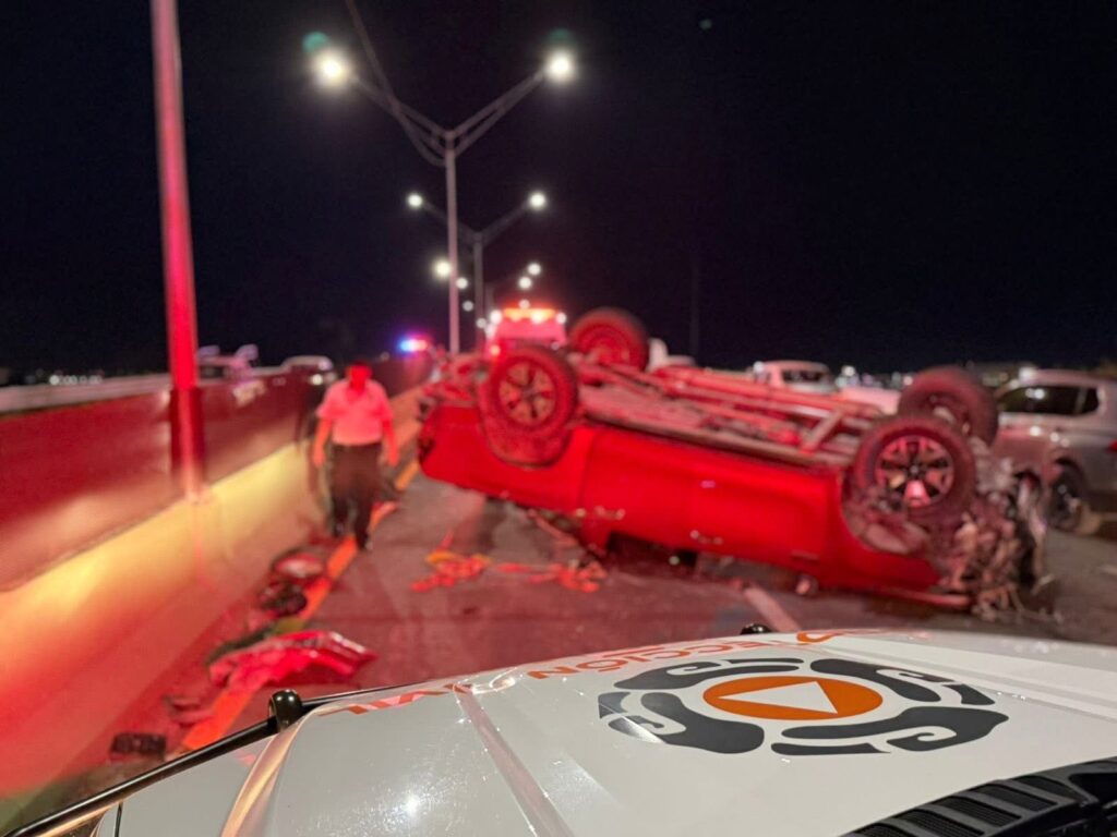 Dos personas resultaron lesionadas, afortunadamente con heridas leves, tras un accidente vial tipo volcadura ocurrido la noche del domingo en la Autopista al Aeropuerto/Vía a Matamoros.