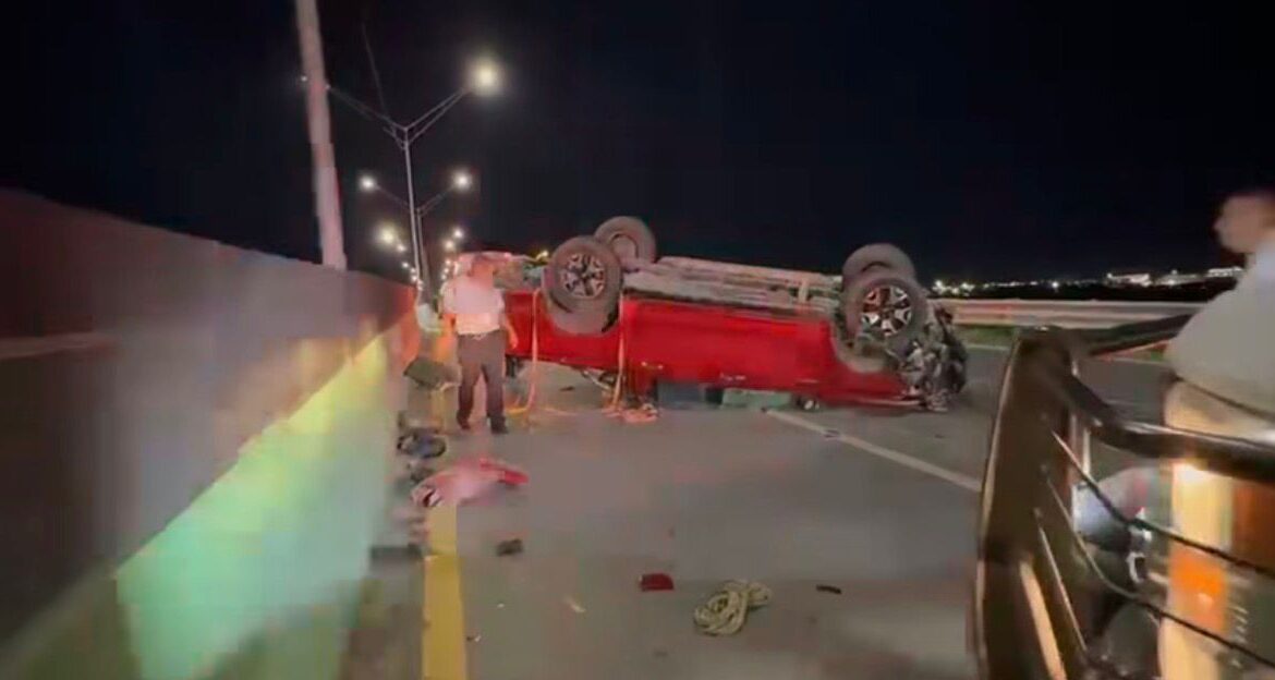 El incidente, registrado a las 21:43 horas, involucró una camioneta tipo Hilux con placas PN4627A, la cual, según los reportes preliminares, se impactó contra un muro de contención para posteriormente volcar.