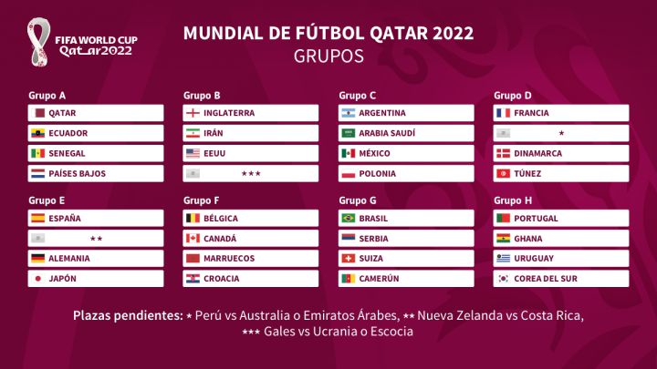 Irán y Estados Unidos, que mantienen relaciones diplomáticas tensas, estarán en el B, al igual que Inglaterra y el ganador de repesca entre Gales, Escocia y Ucrania.