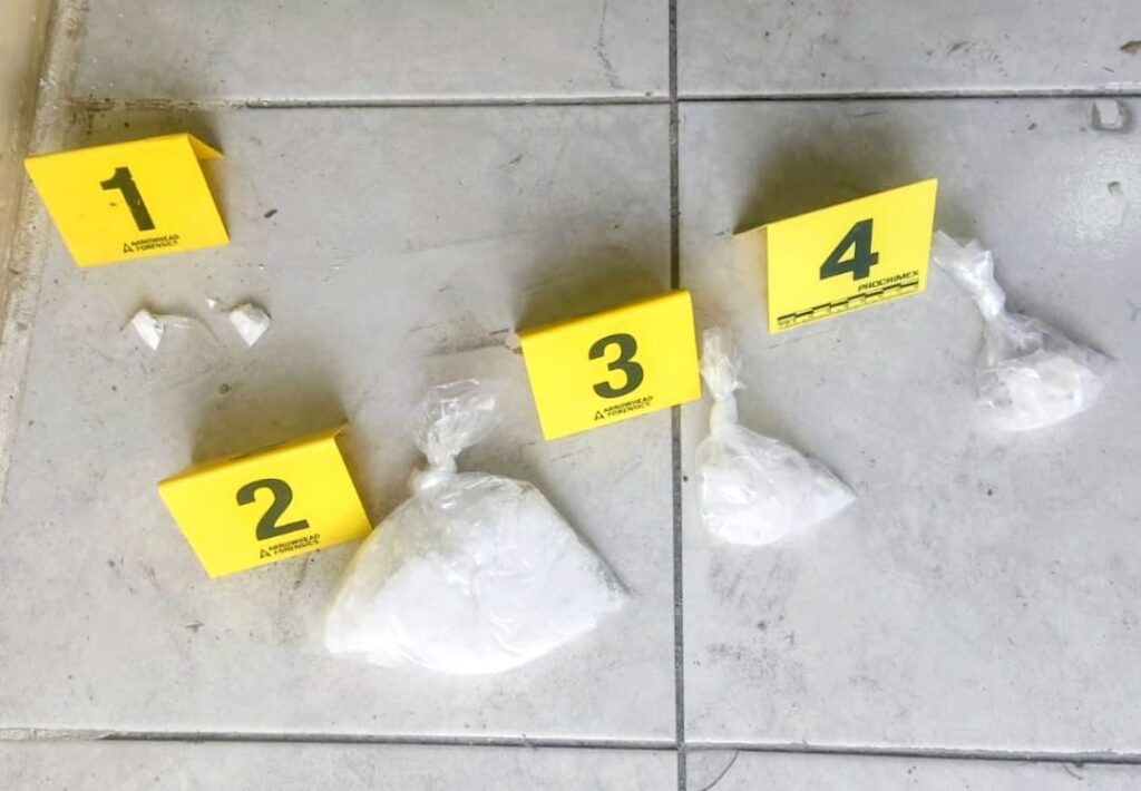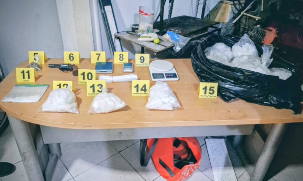En el municipio de General Escobedo, la intervención se llevó a cabo en un domicilio ubicado sobre la avenida San Miguel, en la colonia San Miguel Residencial, donde se logró el aseguramiento de aproximadamente nueve kilogramos de una sustancia sólida cristalina con características compatibles con el narcótico conocido como cristal, así como 30 gramos de una sustancia blanca en polvo similar a la cocaína. Además, se localizó un arma de fuego corta tipo revólver y tres básculas digitales.
