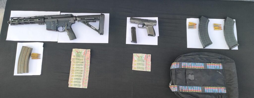 Los detenidos fueron identificados como Orlando “N”, de 19 años de edad; Oziel “N”, de 32 años; y Williams “N”, de 24 años. Durante la intervención se les aseguraron un arma larga abastecida, un arma corta y dos cargadores con municiones.