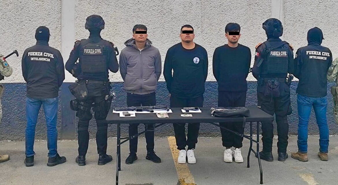 Tres hombres fueron detenidos en el municipio de Monterrey durante un operativo conjunto encabezado por elementos de la Defensa y Fuerza Civil, luego de ser señalados como presuntos generadores de violencia y de encontrarse en posesión de armas de fuego.
