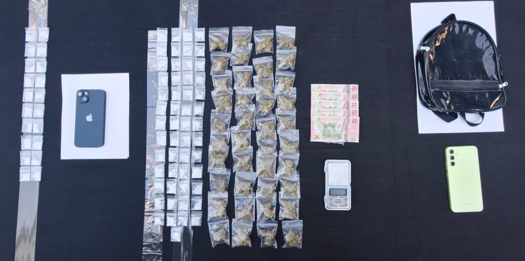 Los individuos se identificaron como José “N”, de 24 años de edad, y Marlon “N”, de 19 años. Durante la inspección, los oficiales localizaron entre sus pertenencias 73 bolsas con una sustancia sólida y granulada con características similares a la droga conocida como cristal, así como 40 bolsas que contenían hierba verde y seca con las características propias de la marihuana.