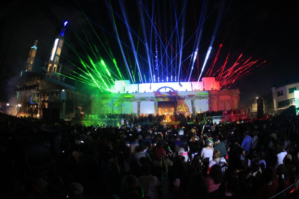 El evento no fue solo ceremonia: la diversión y la cultura se hicieron presentes en cada rincón. Bailes folklóricos y presentaciones de mariachis animaron a los asistentes, mientras un video mapping con fuegos artificiales sorprendía a grandes y pequeños. Los sabores típicos de los antojitos mexicanos completaron la experiencia, invitando a disfrutar de la noche con todos los sentidos.