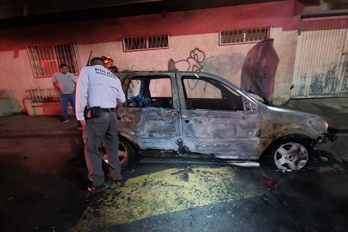 Un vehículo fue consumido por las llamas durante la madrugada de este martes en la estación Celulosa de la Ecovía, ubicada sobre Bernardo Reyes, en Monterrey.