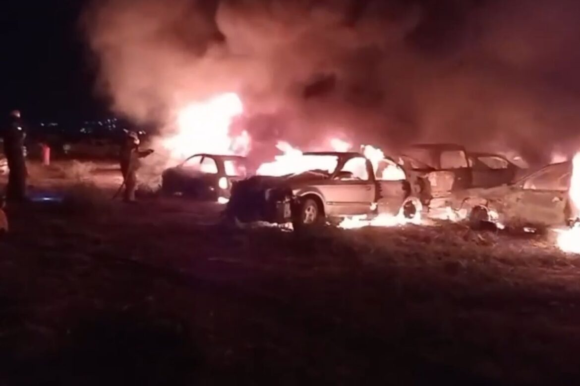Las llamas iluminaron el Parque Industrial Stiva El Jaral la noche del lunes, cuando un incendio se desató en un corralón de “Garajes y Talleres” y consumió decenas de vehículos antes de ser controlado.