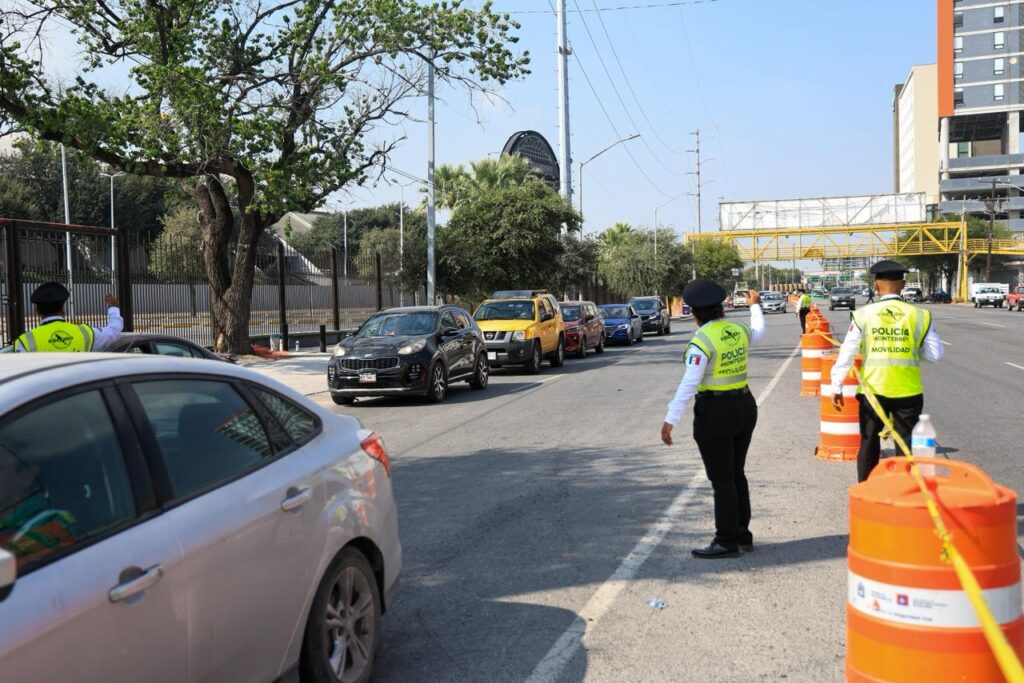 El alcalde Adrián de la Garza, junto con su esposa, la presidenta del DIF Gaby Oyervides, y miembros de su gabinete, recorrió los módulos instalados en el estacionamiento de la Arena Monterrey y los espacios destinados a atención peatonal, verificando que el operativo funcionara de manera eficiente.