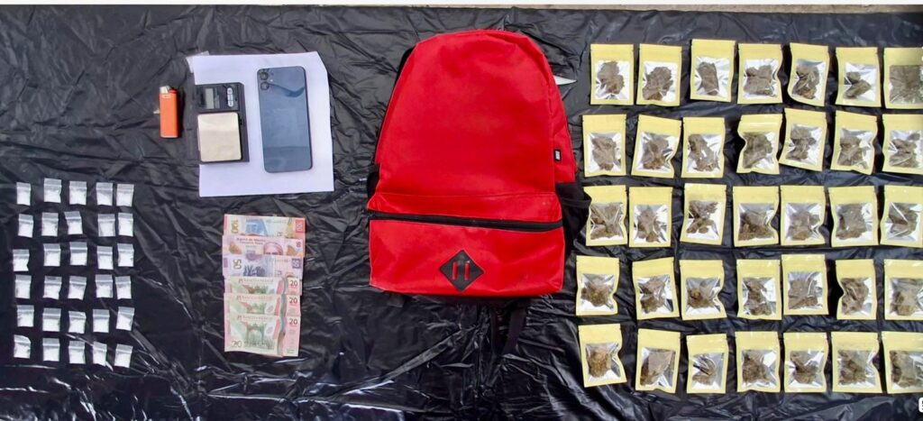Durante la detención, se le aseguraron varias dosis de narcóticos, entre ellas sustancias similares a la marihuana y cristal. Tras el aseguramiento, el hombre fue puesto a disposición del Ministerio Público para las investigaciones correspondientes.