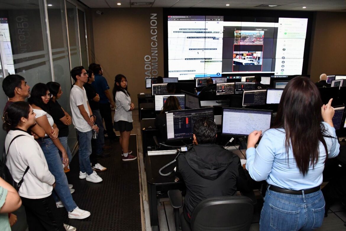 Durante el recorrido guiado por Jorge Ortega Zamarripa, Inspector General de Inteligencia de la Secretaría de Seguridad y Protección Ciudadana de Monterrey, los jóvenes conocieron de primera mano las operaciones que se realizan desde este centro, que forma parte fundamental de la estrategia ESCUDO que implementa la actual administración municipal.