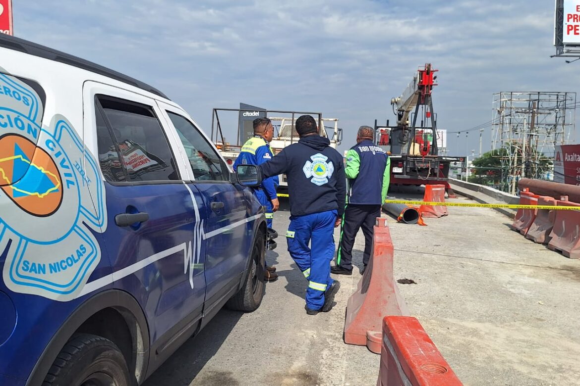 El Gobierno del Estado de Nuevo León informó que el incidente ocurrió en la zona correspondiente al retorno sur del Puente Rómulo Garza–Miguel Alemán, mientras se realizaban maniobras para descargar tubería destinada a la colocación de un parapeto metálico. Los trabajos en ese punto están a cargo de la empresa Grupo Constructor Transportieren, S.A. de C.V., contratada por la Secretaría de Movilidad y Planeación Urbana a solicitud del Ayuntamiento de San Nicolás.