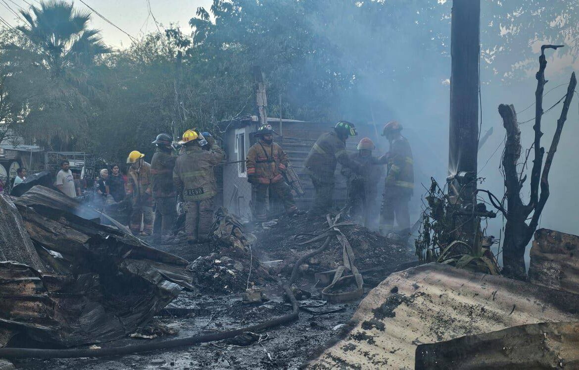 Un incendio registrado la tarde de este viernes en la colonia Tierra Propia, en el municipio de Guadalupe, Nuevo León, provocó severos daños al consumir al menos cinco viviendas construidas principalmente con material de madera.