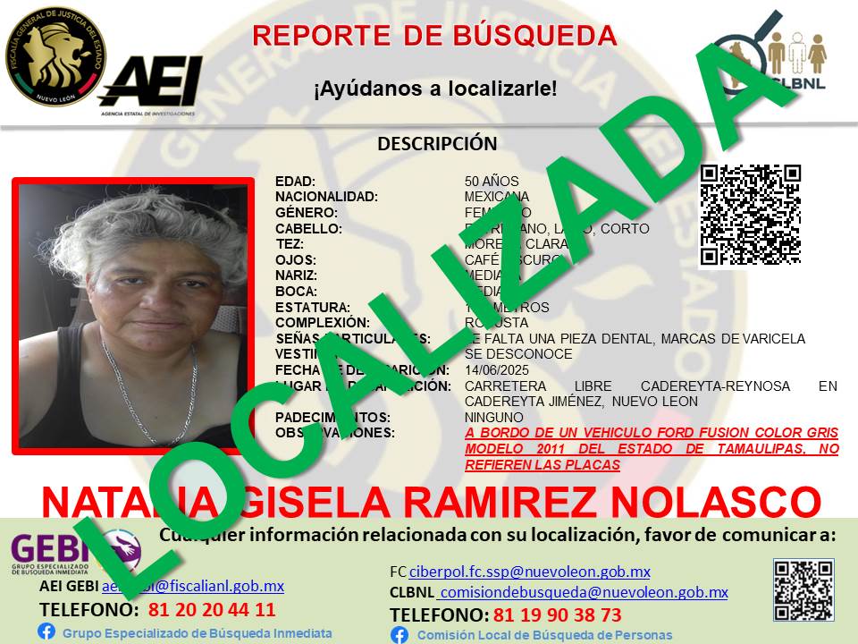 La ubicación de las víctimas se realizó la madrugada de este viernes, alrededor de las 5:26 horas, en un rancho ubicado entre los municipios de Los Ramones y General Terán, en el estado de Nuevo León. Las cuatro personas rescatadas —entre ellas un enfermero— fueron encontradas estables y ya se encuentran bajo resguardo de las autoridades correspondientes para recibir atención médica y psicológica.
