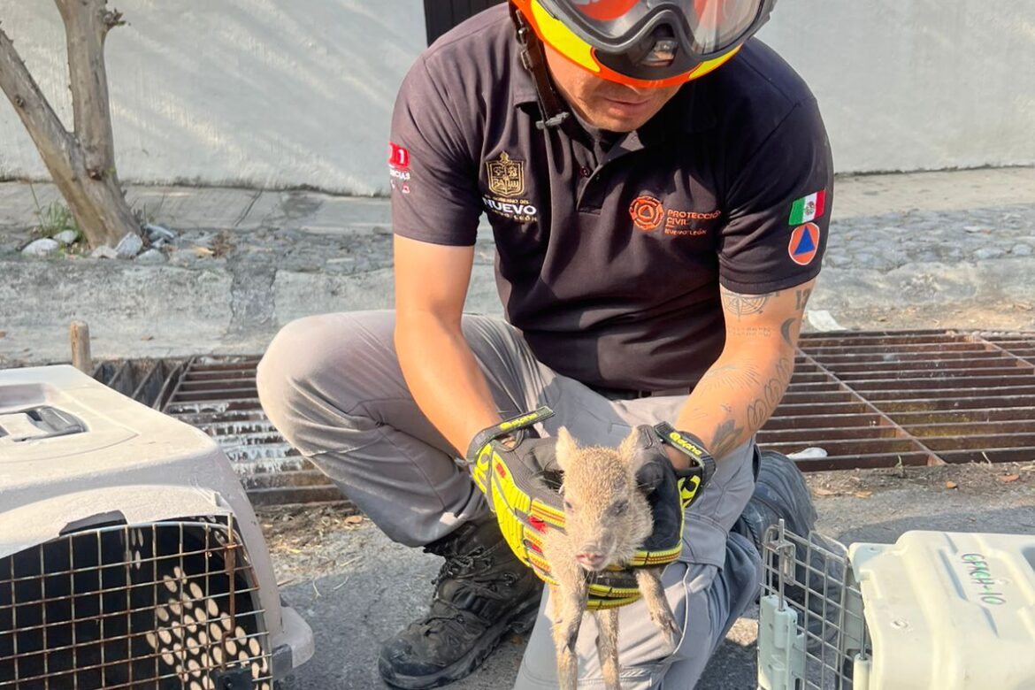 Personal de Protección Civil de Nuevo León, que llegó al sitio alrededor de las 07:21 horas, ubicó primero a un pecarí de collar adulto, el cual fue guiado y ahuyentado hacia su hábitat sin incidentes.