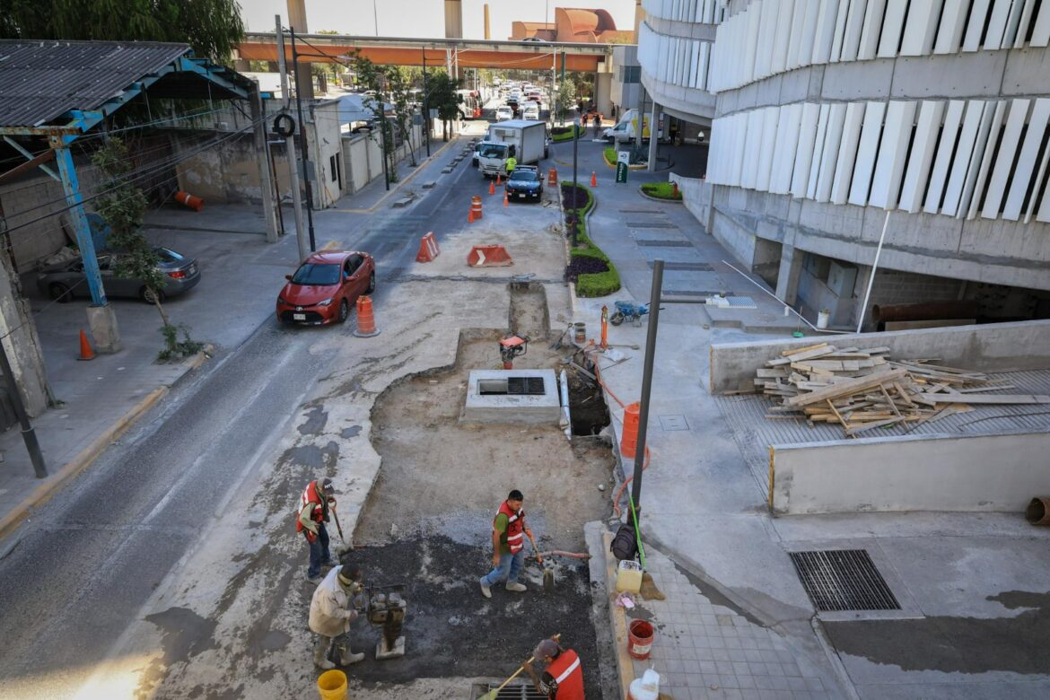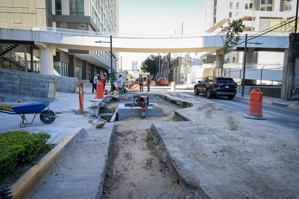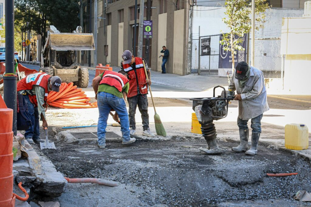 Después de resolver las afectaciones provocadas por una falla en la red pluvial, el Gobierno de Monterrey trabaja en la etapa final de reparación del hundimiento que se formó sobre la calle Washington, casi al cruce con Félix U. Gómez.