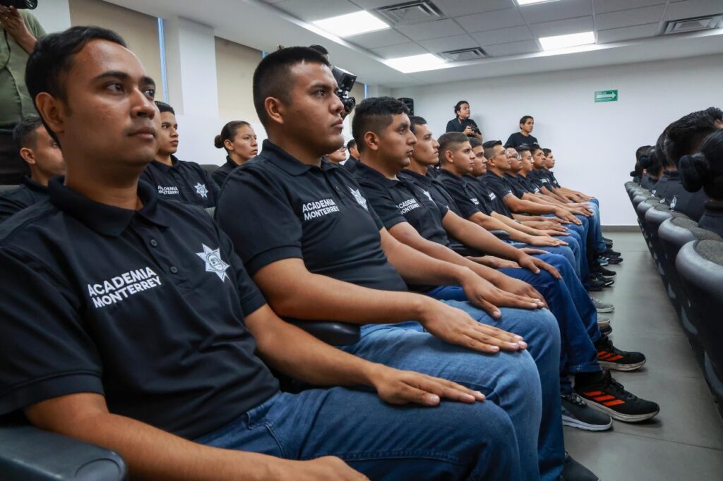 El Alcalde Adrián de la Garza encabezó la ceremonia realizada en la Academia de Policía y subrayó que estas capacitaciones permiten ir más allá de lo que marca el Sistema Nacional de Seguridad Pública. “Parte de la preparación es ir más allá de lo que nos marca el Sistema Nacional de Seguridad Pública y hoy lo estamos haciendo”, afirmó. También agradeció al Instituto por colaborar en la formación: “Aunque no está dentro del programa del Sistema Nacional de Seguridad Pública, ustedes ya lo hicieron”.