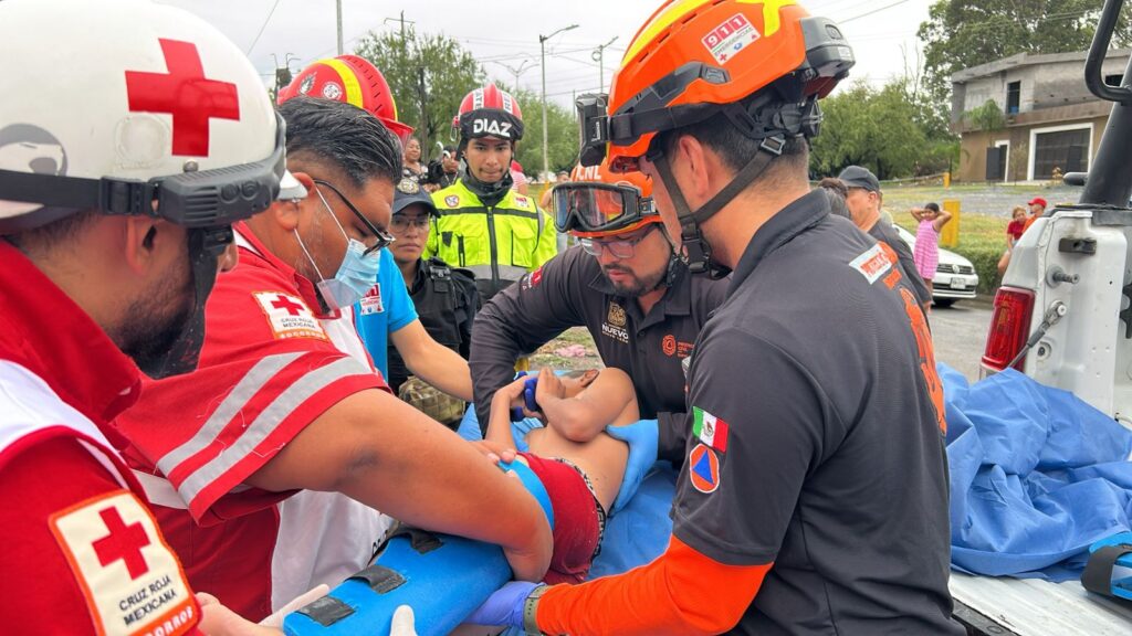 El rescate fue posible gracias a la intervención de personas del lugar, quienes lograron sacarlo de la corriente con golpes visibles y una posible fractura en el fémur izquierdo. Inmediatamente se brindaron los primeros auxilios en el sitio por parte de la Unidad 07 de Protección Civil Nuevo León y la Unidad 180 de Cruz Roja, antes de que el menor fuera trasladado al Hospital IMSS #21.