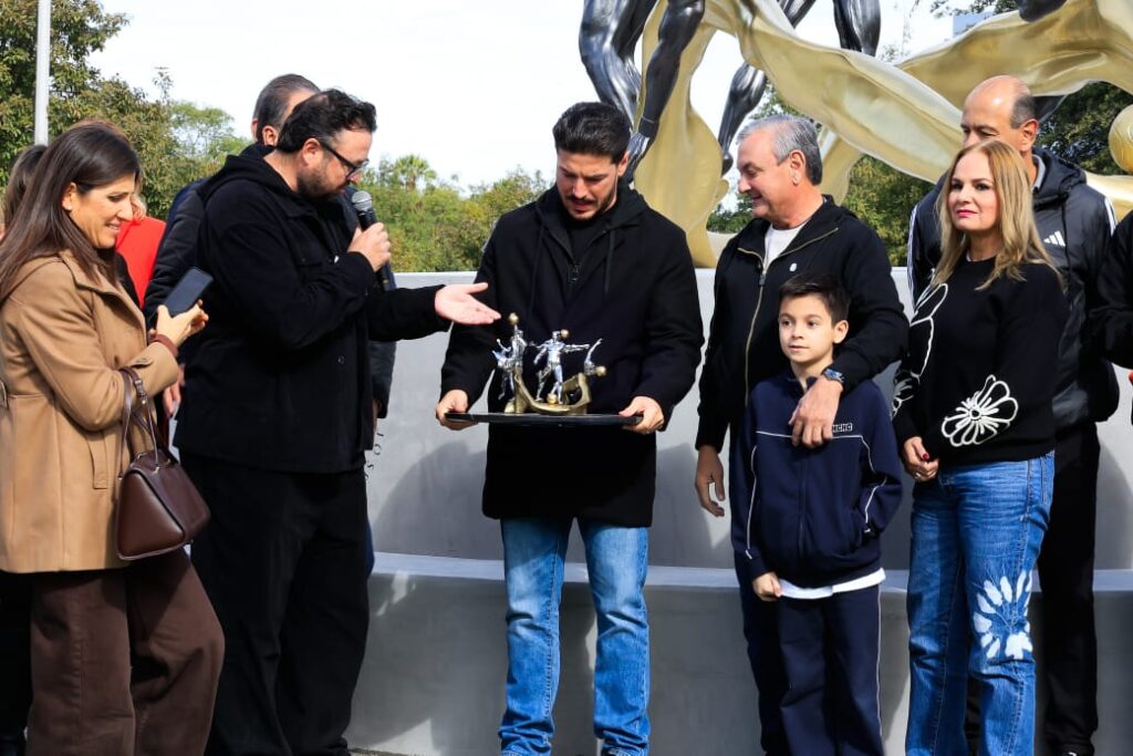 Las obras del Mundial de Futbol 2026 en Guadalupe no solo se reflejarán en infraestructura vial o deportiva, sino también en expresiones culturales que permanecerán en el tiempo. Bajo esa premisa fue presentada la escultura en bronce “Pasión Mundial”, instalada en el entorno del Estadio de Rayados.