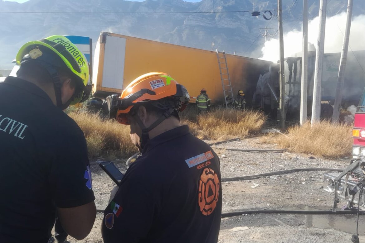 El reporte fue recibido por Protección Civil de Nuevo León a las 08:54 horas, y al llegar al kilómetro 6 de la vía confirmaron que se trataba de un tráiler de doble remolque envuelto en llamas. La unidad, tras quedarse sin frenos, ingresó a la rampa de emergencia, pero rebasó el límite y terminó fuera del camino, provocando el incendio de su carga.