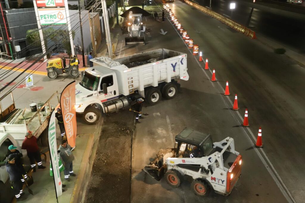 De manera simultánea, personal de Servicios Públicos llevó a cabo trabajos de conservación en la lateral de la avenida Díaz Ordaz, desde el Puente Atirantado hasta la calzada Mauricio Fernández Garza, en la colonia Santa María.