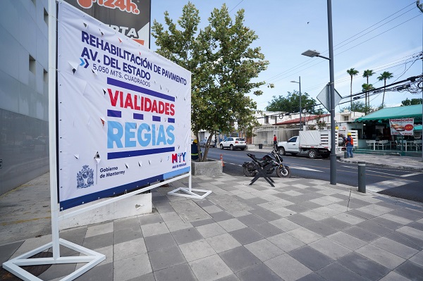 Como parte del programa Vialidades Regias, el Gobierno de Monterrey concluyó la rehabilitación de más de 5 mil metros cuadrados de pavimento en la avenida del Estado, en la colonia Tecnológico, y dio inicio al soterramiento de cableado aéreo para mejorar la imagen urbana y la infraestructura de servicios.