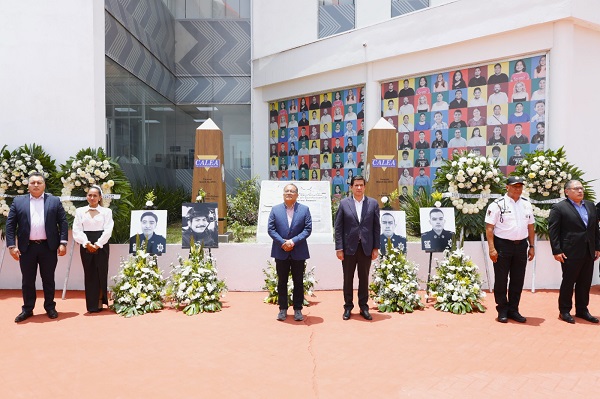 Desde la explanada de la Secretaría de Seguridad Ciudadana, familiares, compañeros de corporación y autoridades municipales se reunieron para rendir honores a Jesús Salvador Valle, miembro de los Grupos Especiales, así como a Jair Sarabia, Carlos Vázquez y Erick Asaí Martínez, quienes pertenecían a la Dirección de Prevención Social.