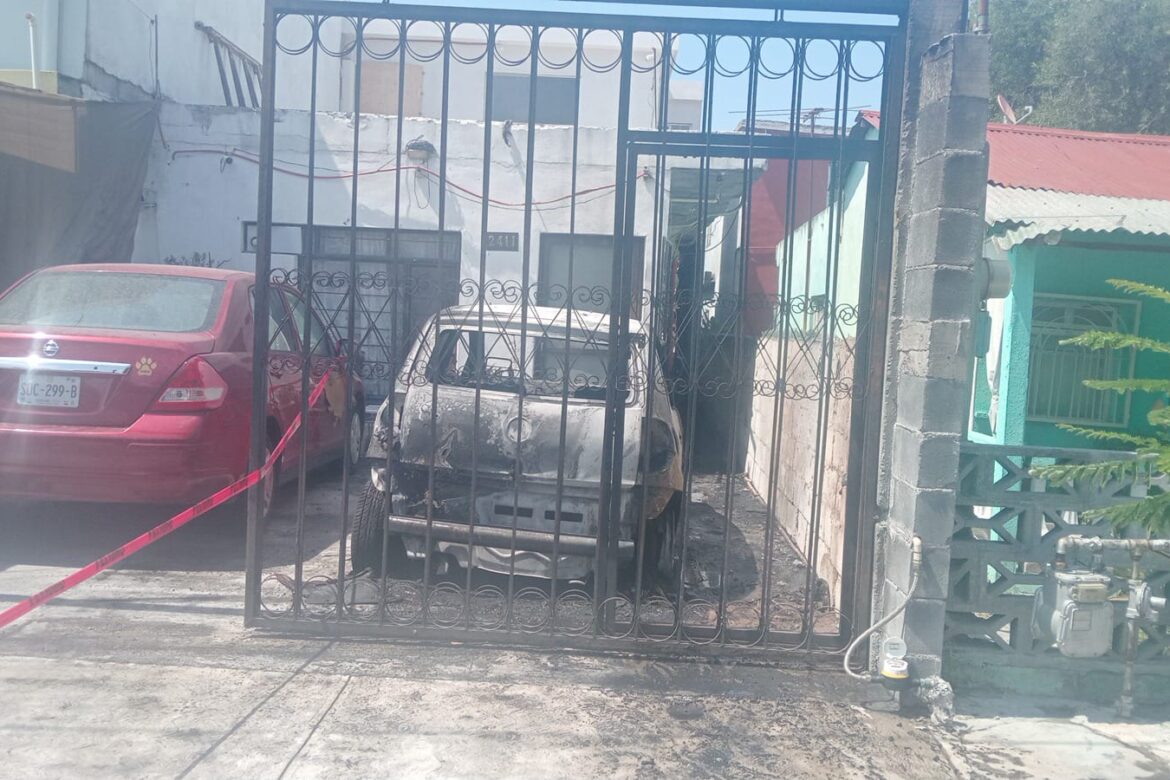 Un vehículo se incendió la tarde de este sábado en la colonia Talleres, en Monterrey, luego de que un cable de alta tensión cayera sobre él tras un cortocircuito provocado por un paraguas, informó Protección Civil de Nuevo León.