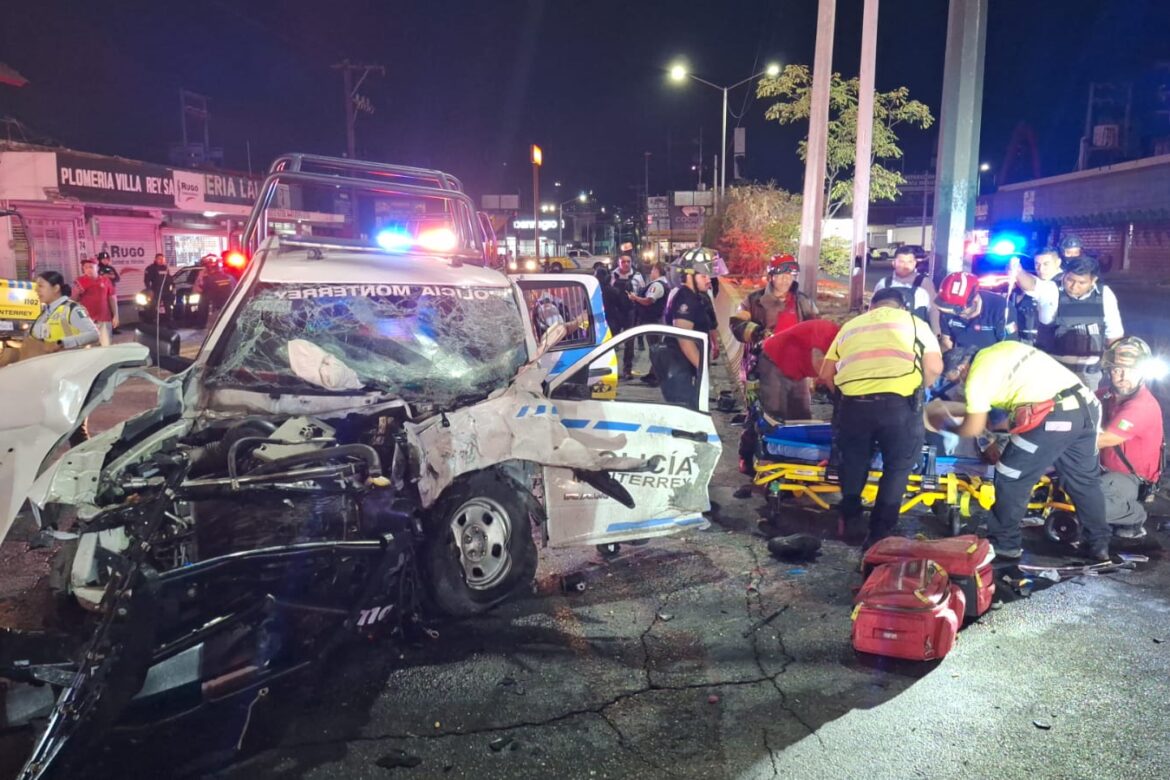 Una persecución derivada de un reporte de robo terminó en tragedia la madrugada de este jueves, cuando dos patrullas de la Policía de Monterrey chocaron violentamente en el cruce de Bernardo Reyes y Reforma, en la colonia Centro.