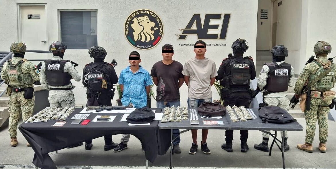Monterrey, NL.- Elementos de la División de Inteligencia de Fuerza Civil, en coordinación con el Grupo de Coordinación Metropolitana, lograron la detención de tres hombres presuntamente vinculados a un grupo criminal, entre ellos uno que contaba con una orden de aprehensión vigente por el delito de secuestro agravado en grado de tentativa.