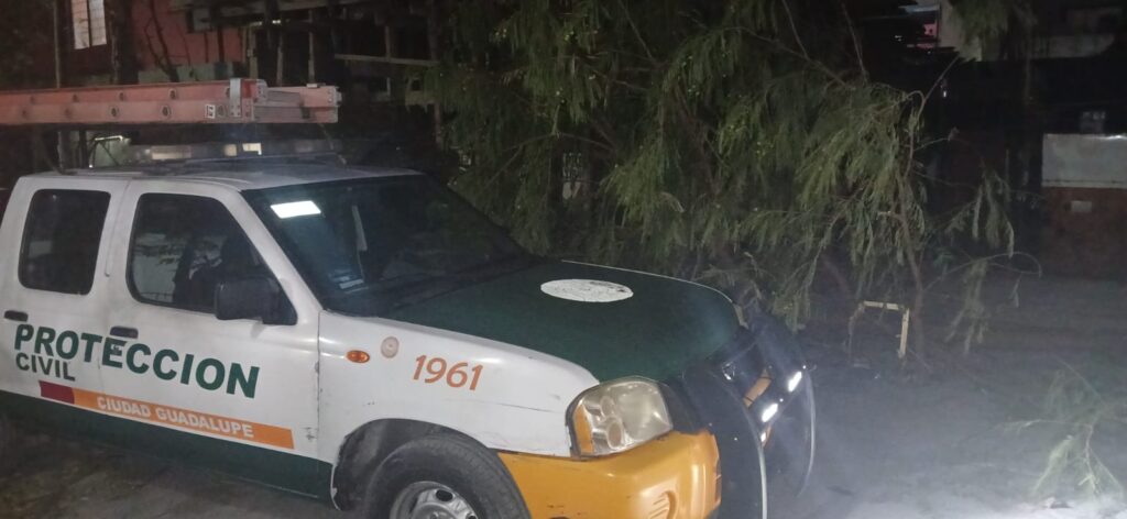 Las fuertes rachas de viento registradas durante la madrugada de este lunes en el área metropolitana de Monterrey generaron diversas afectaciones en el municipio de Guadalupe, lo que derivó en la movilización de personal de Protección Civil municipal.